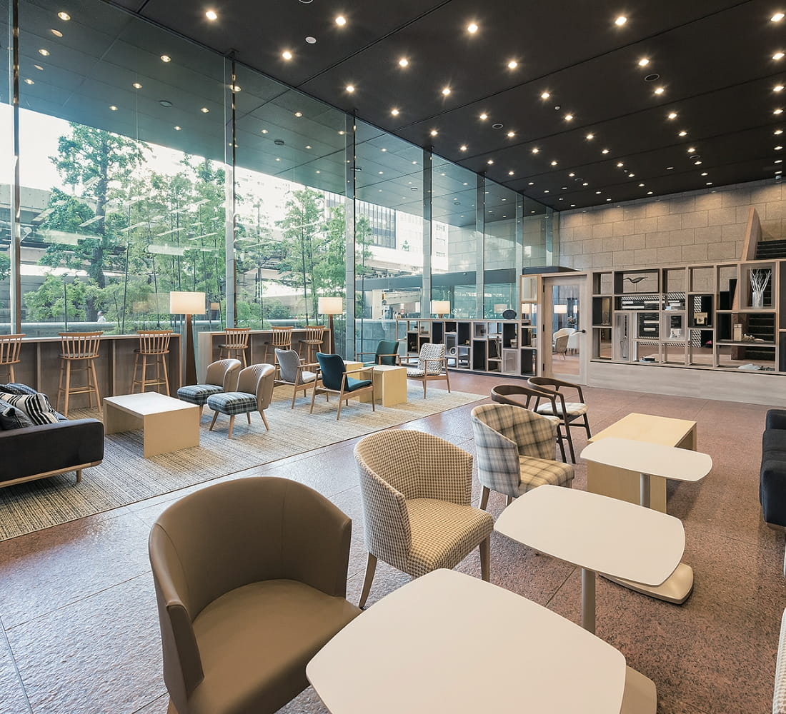 跟着1楼入口和10楼设有2个开放式交流休息室。