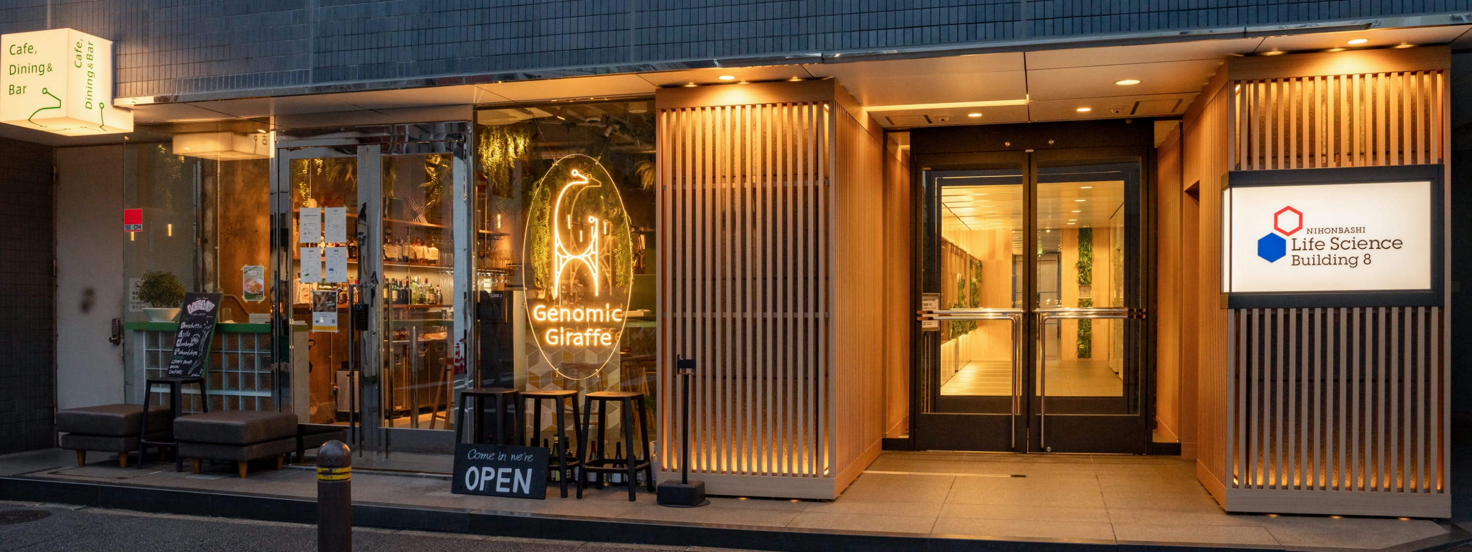 由LINK-J联合打造的Cafe,Dining&Bar“Genomic Giraffe”。 白天可以作为Cafe,晚上可以作为Dining&Bar使用。