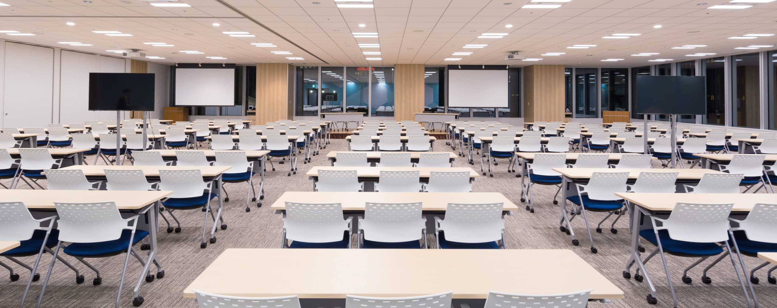 - 通过可动式间壁的开放操作,可以连接使用会议室(D会议室、E会议室)。使用E(A+B+C)会议室的话,大厅也可以包场使用。