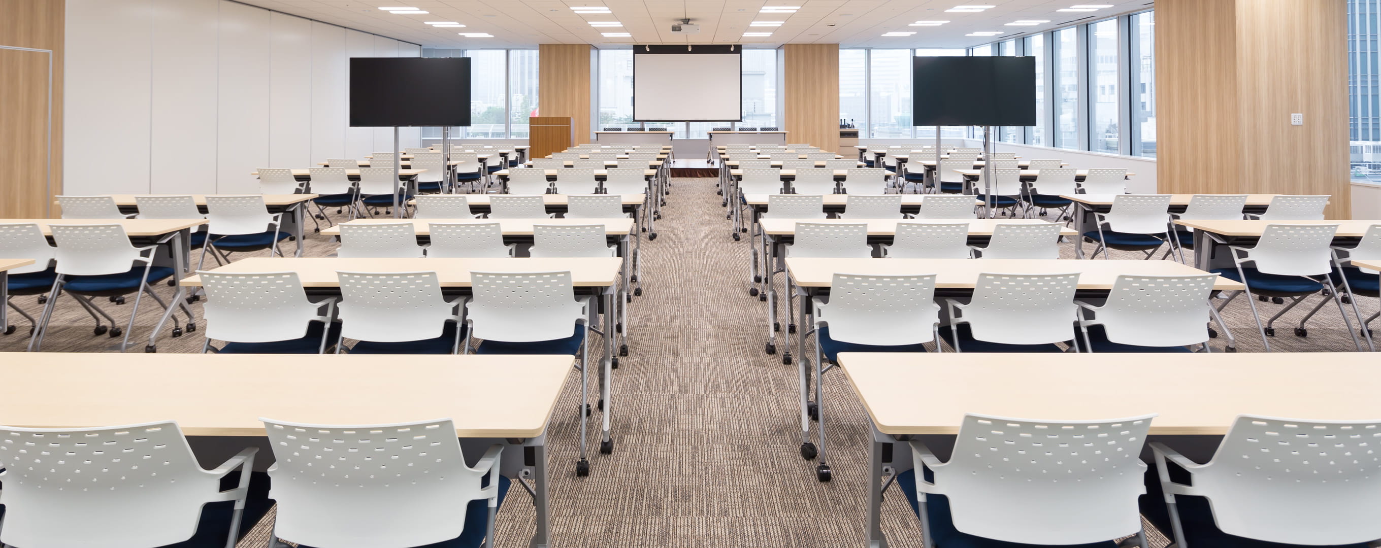 - 通过可动式间壁的开放操作,可以连接使用会议室(D会议室、E会议室)。使用E(A+B+C)会议室的话,大厅也可以包场使用。