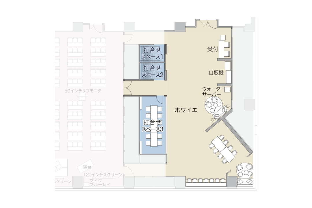 - 只在使用E(A+B+C)会议室时可以包场使用。大厅的使用费包含在E会议室的使用费中。