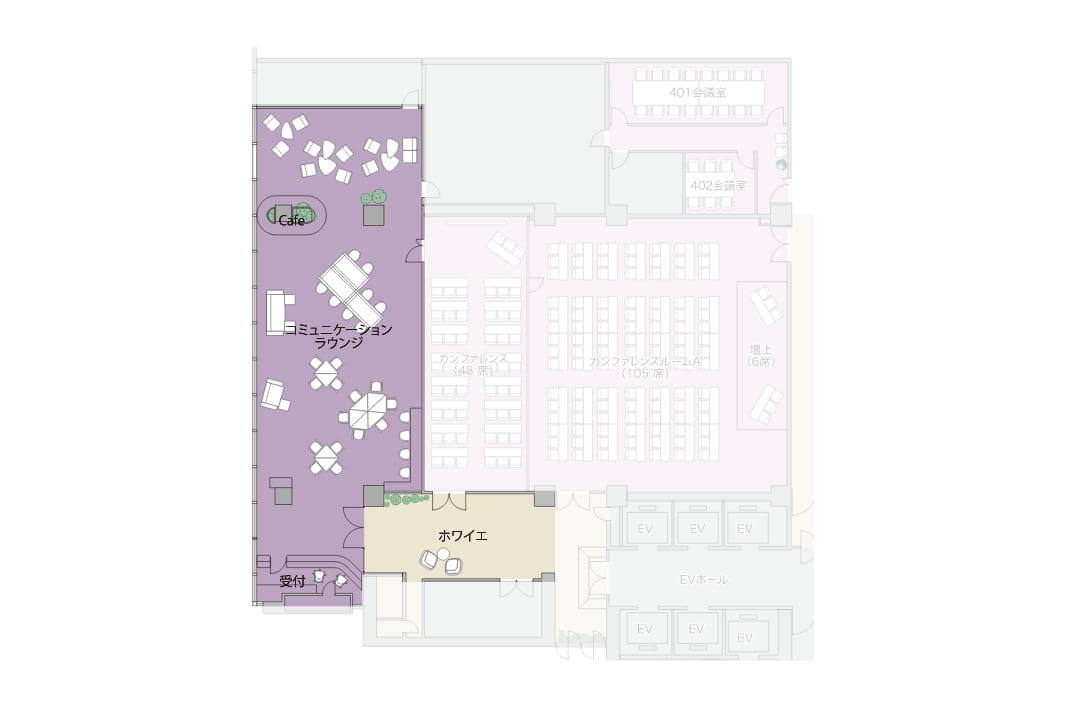 - 仅限16点30分以后使用A+B会议室时,可以包场使用。 交流休息室的使用费包含在会议一室的使用费中。